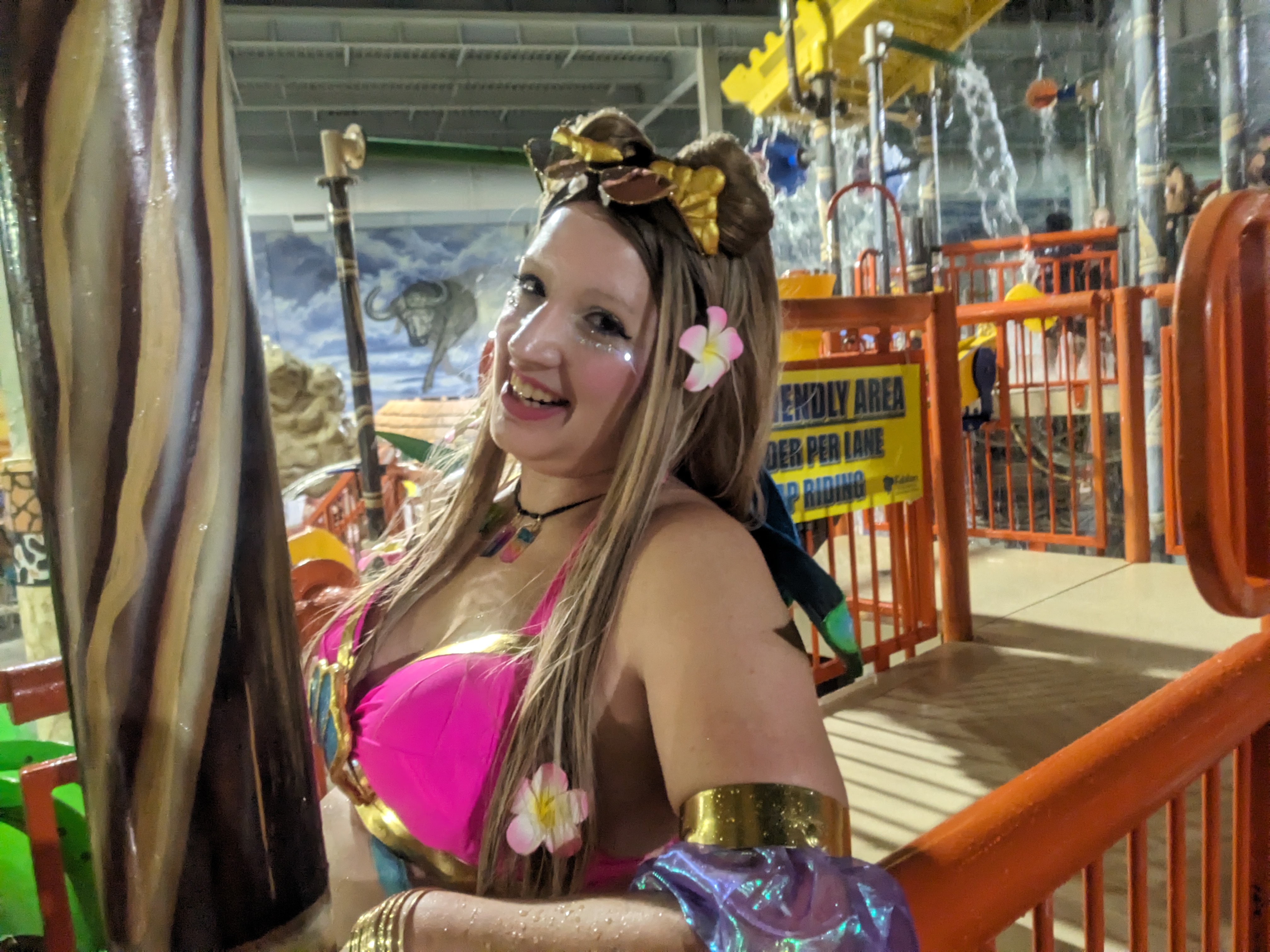 I specifically selected the Ocean Song skin for Seraphine because I wanted to do a “pool party” cosplay that would be true to character and I really liked this skin. I am so proud of how this cosplay turned out and got some great shots in the water park at Colossalcon East too!