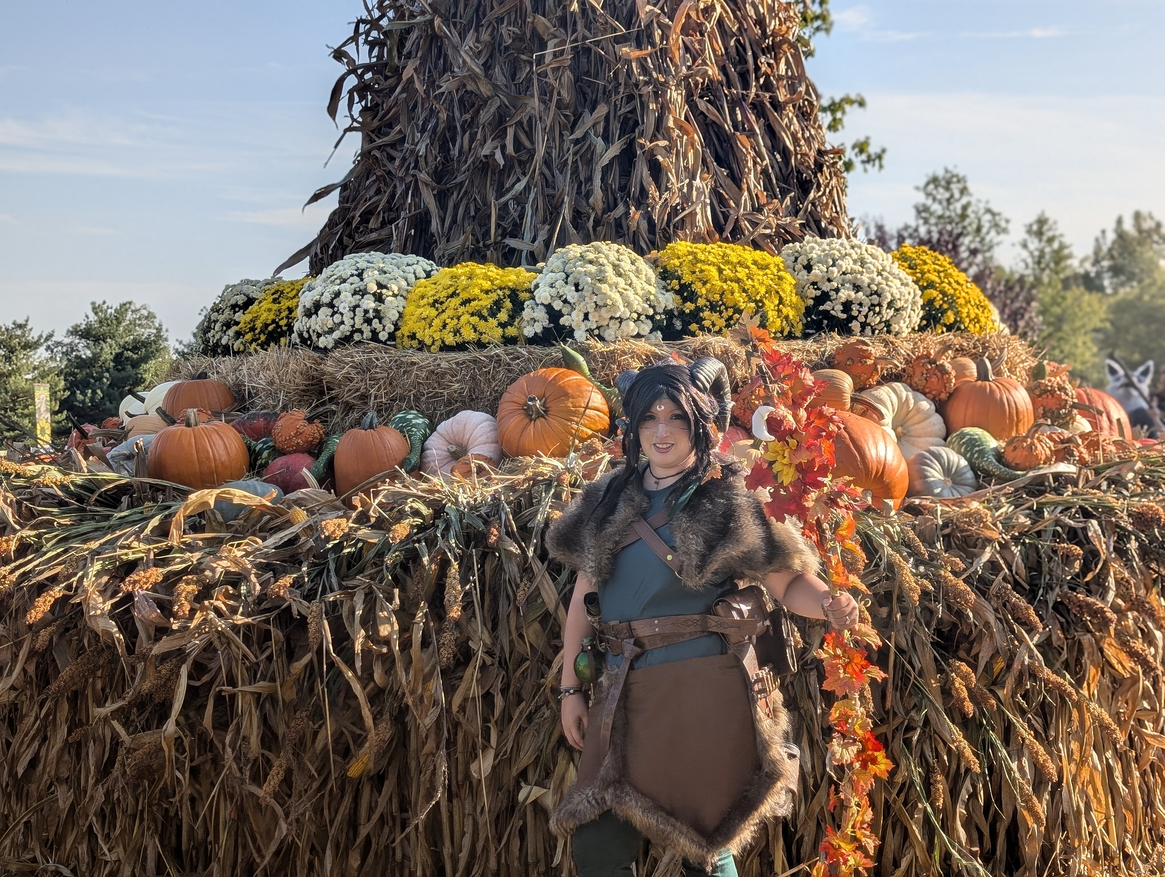 Korahanna is another one of my original Dungeons and Dragons Characters. She is a Court of Stars druid and an Autumn Eladrin. I created this cosplay for the Halloween Event at the Ren Faire.