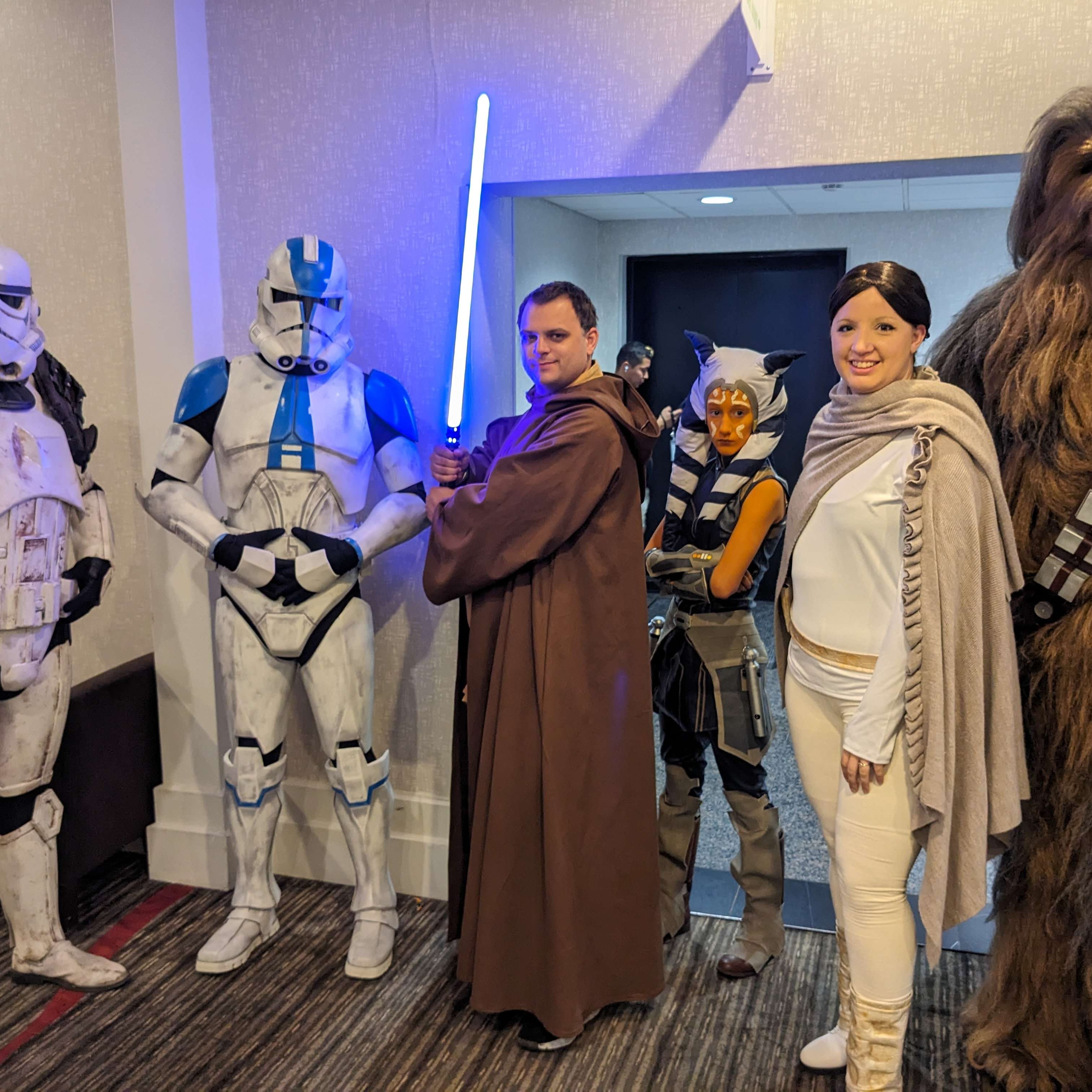 Padme from Star Wars Attack of the Clones and my husband as a Jedi with members of the 501st and Rebel Legions – Hershey Comic Con – July 1, 2023