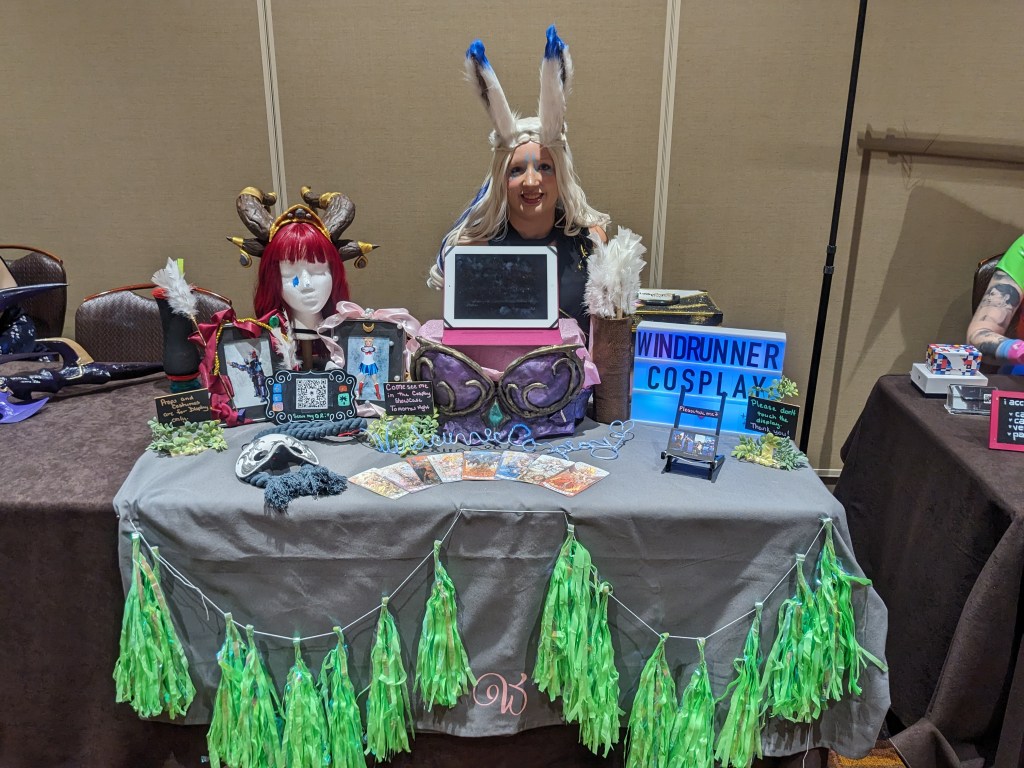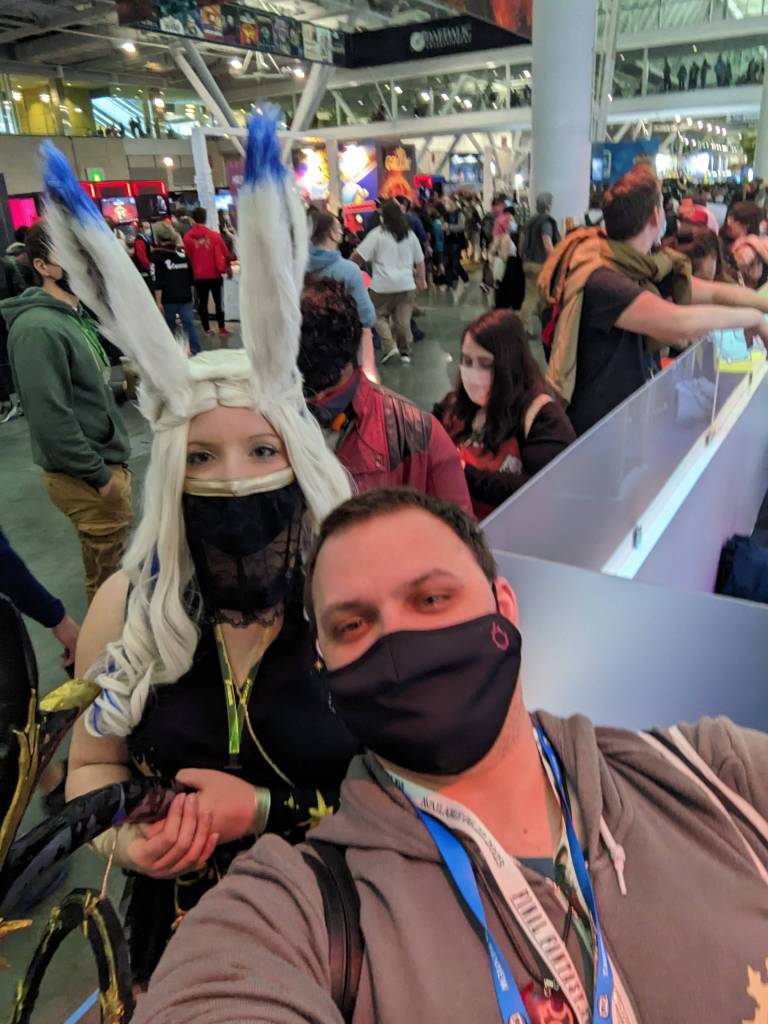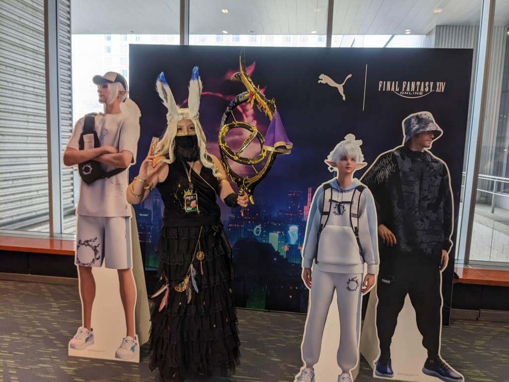 Viera Astrologian from FFXIV – PAX East 2023 – Final Fantasy Puma DisplayViera Astrologian from FFXIV – PAX East 2023 – Selfie while we wait to play Pokemon TCG